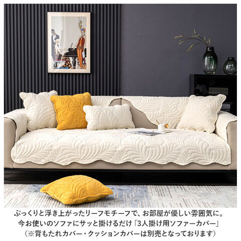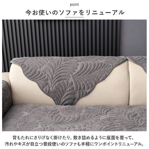 程よく厚みのある生地感なので、ネコちゃんやワンちゃんがガリガリと爪を立ててしまいがちな合皮やレザーのソファーにサッと掛けて、ペットの爪とぎ対策にも効果的。