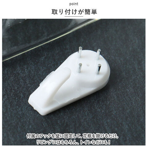 付属のフックを壁に固定して、花瓶を掛けるだけ。リビングにはもちろん、トイレなどにも!