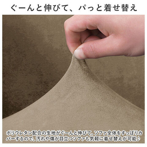 ポリウレタン配合の生地がぐーんと伸びて、ソファ全体をすっぽりカバーするので、汚れや傷が目立つソファも気軽に着せ替えが可能♪