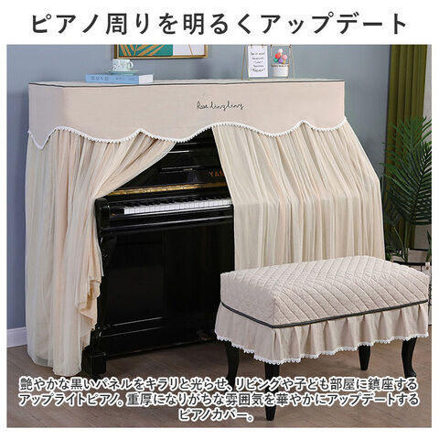 ベンチタイプのピアノチェアにぴったり装着、ピアノカバーとトータルコーディネートができる、同じデザインのチェアカバーが付属。