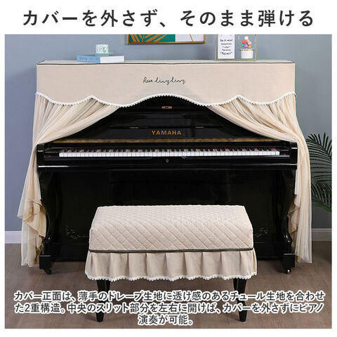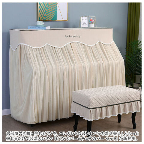 ベンチタイプのピアノチェアにぴったり装着、ピアノカバーとトータルコーディネートができる、同じデザインのチェアカバーが付属。