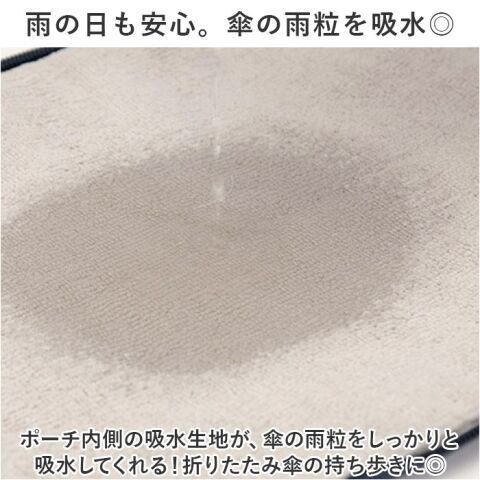 ポーチ内側の吸水生地が、傘の雨粒をしっかりと吸水してくれる!