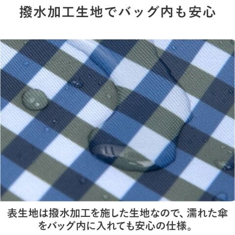 表生地は撥水加工を施した生地なので、濡れた傘をバッグ内に入れても安心の仕様。