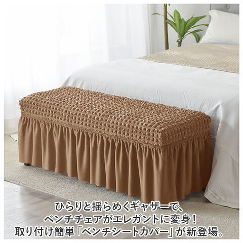 カーテンのようにひらめくギャザーが、ベンチの足元をすっぽり覆ってお部屋全体が優雅な雰囲気に。肌触りのよいメッシュ生地だから、真夏でもサラリと心地よい座り心地。