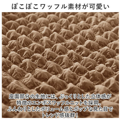 座面部分の生地には、ぷっくりとした立体感が特徴のエンボスワッフルニットを採用。ふんわりとしたボリューム感とポップな見た目でトレンド感抜群!