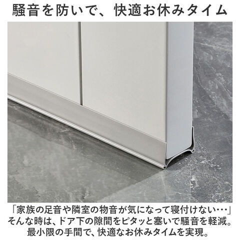 ・「家族の足音や隣室の物音が気になって寝付けない・・・」そんな時は、ドア下の隙間をピタッと塞いで騒音を軽減。最小限の手間で、快適なお休みタイムを実現。