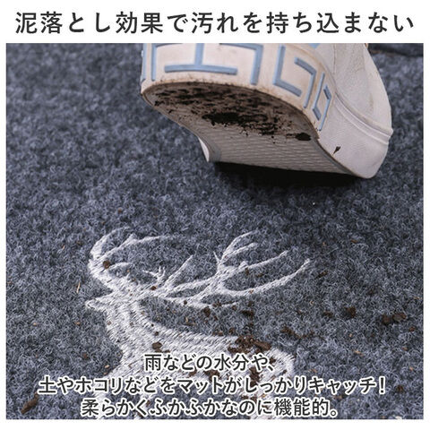 雨などの水分や、土やホコリなどをマットがしっかりキャッチ! 柔らかくふかふかなのに機能的。