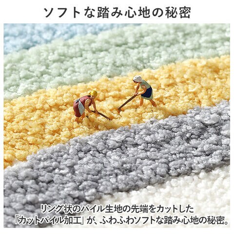 リング状のパイル生地の先端をカットした「カットパイル加工」が、ふわふわソフトな踏み心地の秘密。