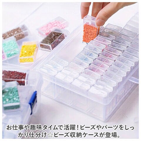 ビーズや細かなパーツなどをケースに入れてBOXに収納できるアイテム。すっきり整理整頓◎