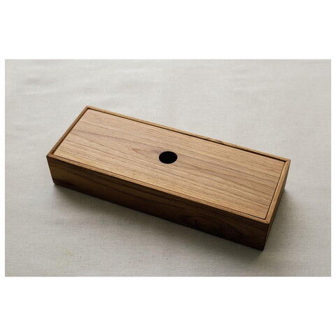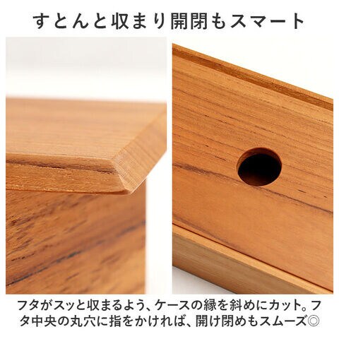 フタがスッと収まるよう、ケースの縁を斜めにカット。フタ中央の丸穴に指をかければ、開け閉めもスムーズ◎