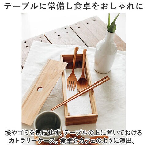 埃やゴミを気にせず、テーブルの上に置いておけるカトラリーケース。食卓をカフェのように演出。