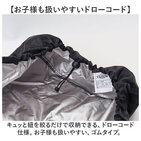 キュッと紐を絞るだけで収納できる、ドローコード仕様。お子様も扱いやすい、ゴムタイプ。