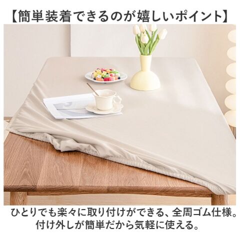 全周ゴムタイプで簡単装着! 嬉しい撥水タイプの「テーブルクロス puレザー素材」が登場。