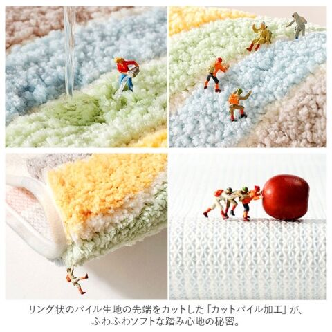 ◆リング状のパイル生地の先端をカットした「カットパイル加工」が、ふわふわソフトな踏み心地の秘密。
