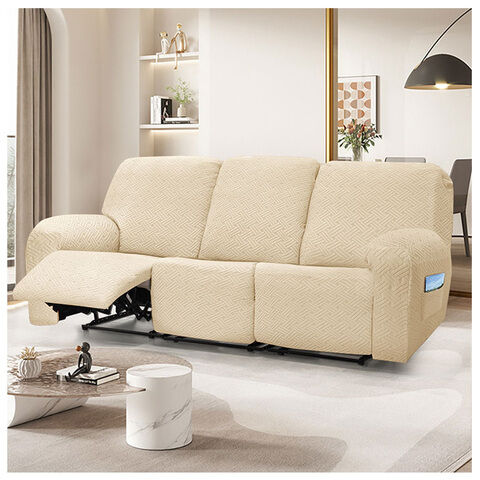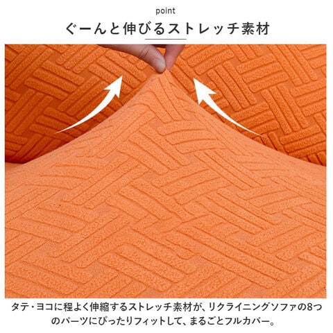 タテ・ヨコに程よく伸縮するストレッチ素材が、リクライニングソファの8つのパーツにぴったりフィットして、まるごとフルカバー。