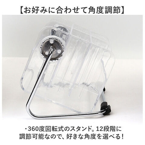 ・360度回転式のスタンド。12段階に調節可能なので、好きな角度を選べる!