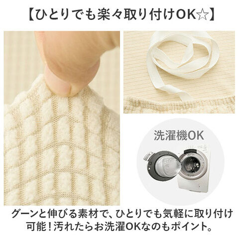 グーンと伸びる素材で、ひとりでも気軽に取り付け可能! 汚れたらお洗濯OKなのもポイント。