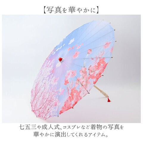 日本舞踊のお稽古や劇の小道具、和室のインテリアなど幅広く活用できる上品で華やかな和傘。