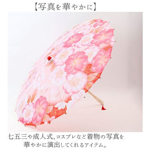 日本舞踊のお稽古や劇の小道具、和室のインテリアなど幅広く活用できる上品で華やかな和傘。