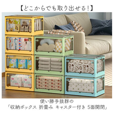 使い勝手抜群の「収納ボックス 折畳み キャスター付き 5面開閉」