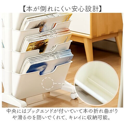 中央にはブックエンドが付いていて本の折れ曲がりや滑るのを防いでくれて、キレイに収納可能。