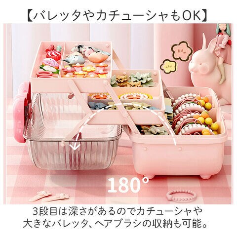 ・3段目は深さがあるのでカチューシャや大きなバレッタ、ヘアブラシの収納も可能。