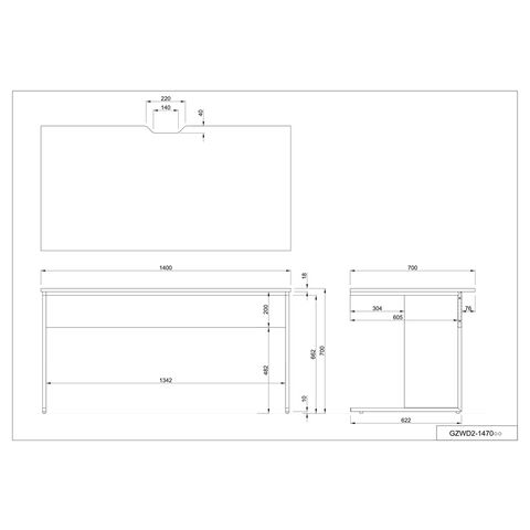 ◆天板はキズのつきにくい低圧メラミン樹脂化粧、配線用の切り欠きが有り、壁付けや対面レイアウトに対応しています。