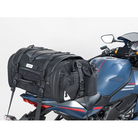 ◆乗り降りしやすいローフォルムで且つ長手の荷物の積載にも対応、2~4泊に最適サイズの可変大容量ツーリングバッグ
