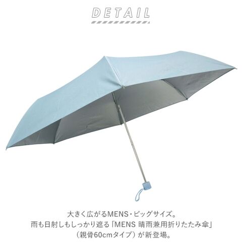 ◆雨も日射しもしっかり遮る「MENS 晴雨兼用折りたたみ傘」(親骨60cmタイプ)。