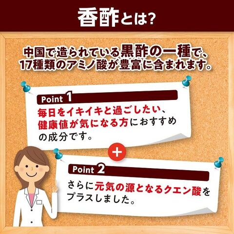 ■成分・原材料:香酢1日3粒総重量1470mg(内容量915mg)あたり香酢粉末450mg、クエン酸15mg