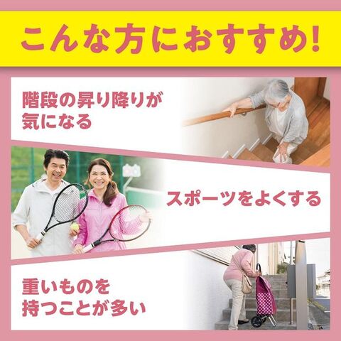 ■主要原材料:鶏軟骨抽出物(II型コラーゲン、コンドロイチン硫酸含有)、濃縮乳清活性たんぱく(乳由来)、グルコサミン(えび、かに由来)