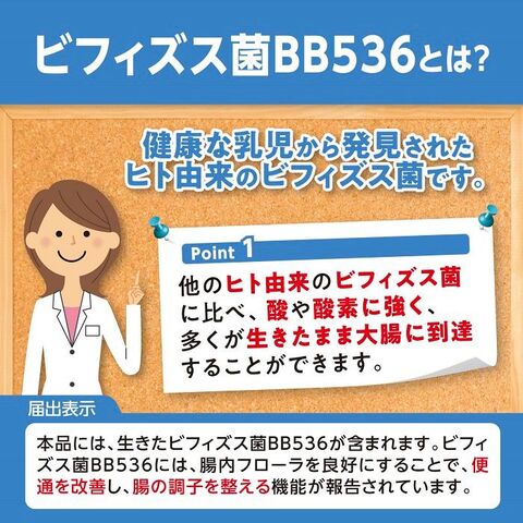 ◆機能性関与成分[ビフィズス菌BB536]を200億個以上も配合した【機能性表示食品】です。