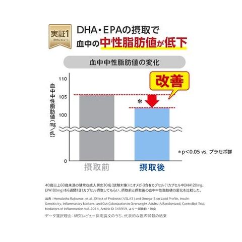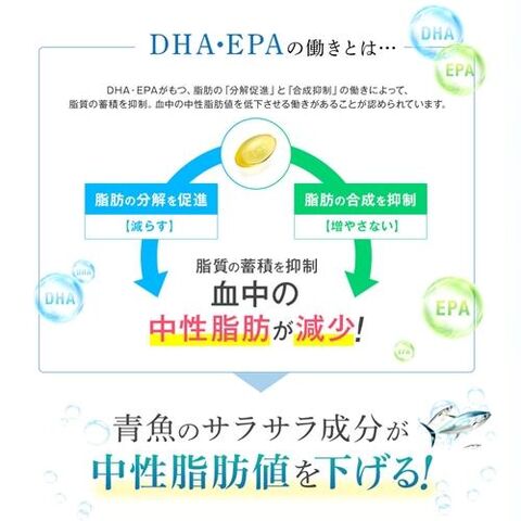 ◆DHA・EPAには血中の中性脂肪値を低下させる機能があることが報告されています。