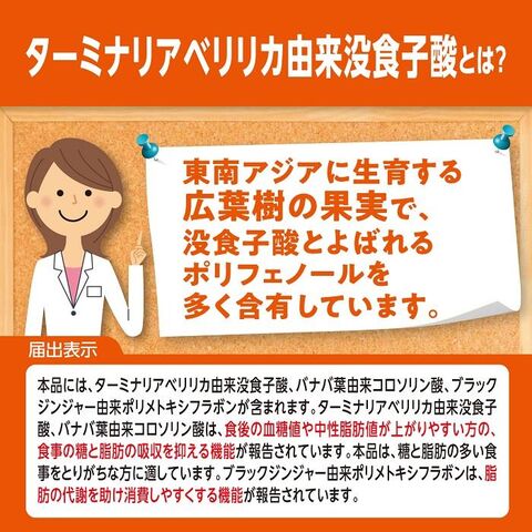 ◆本品に含まれるターミナリアベリリカ由来没食子酸、バナバ葉由来コロソリン酸は、食後の血糖値や中性脂肪値が上がりやすい方の、
