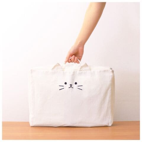 ◆かわいい猫の顔は刺繍でデザインされています