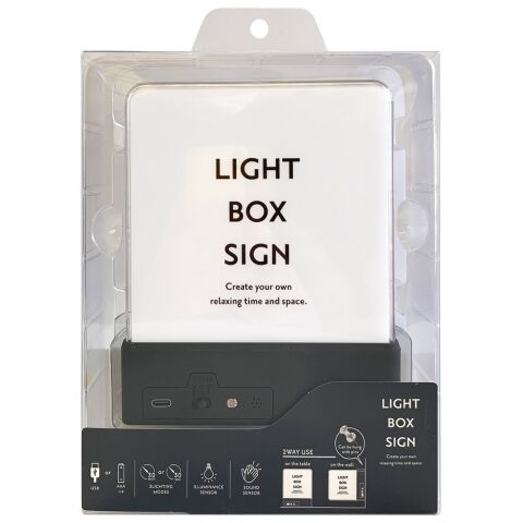 - 内容物:サインBOX(内側乳白BOX)サインBOX(外側透明BOX)LEDベース(電池BOX)仮デザインシート×2枚(使い方説明書)