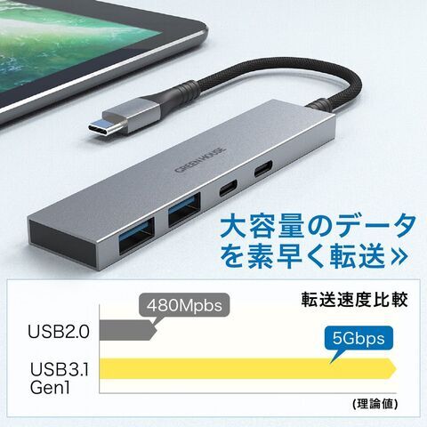 ■USB Type-C接続の超高速・薄型軽量の4ポート USBハブ