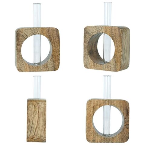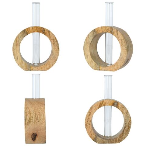 ◆ほのかに南国情緒が漂うマンゴーウッドのベースに、試験管のようなガラスチューブを合わせた上品なデザイン。
