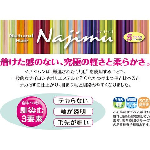 ◆〈ナジム〉は厳選された‘人毛’を使用することで、一般的なナイロンやポリエステルで作られたつけまつ毛と比べるとテカらずに仕上がり、自まつ毛と馴染みやすくなりました。
