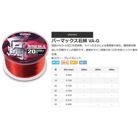 バリバス バーマックス石鯛 VA-G 300m ブレイズレッド(20号) VARIVAS ナイロンライン 道糸 バーマックスイシダイ VA-G 300m(20ゴウ) 【返品種別B】