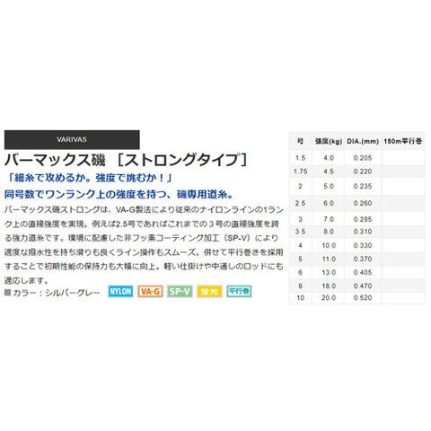バリバス バーマックス磯 ストロングタイプ 150m シルバーグレー(4号/10.0kg) VARIVAS ナイロンライン 道糸 バーマックスイソ ストロングタイプ 150m(4ゴウ/10.0kg) 【返品種別B】