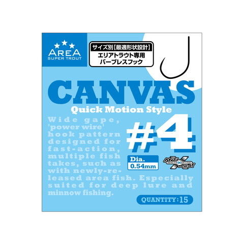 バリバス スーパートラウトエリア フック キャンバス #4 15本入 VARIVAS エリアトラウト用バーブレスフック スーパートラウトエリアフックキャンバス#4 【返品種別A】