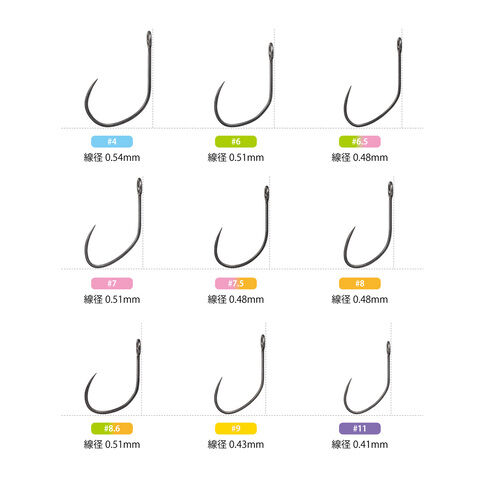 番手ごとに明確な役割を持たせた【番手別最適形状設計】により、シチュエーションに合わせたベストなフッキングを実現します。