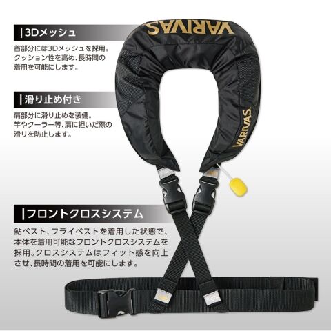 バリバス ライフジャケット ショートタイプ VAL-18 (ブラック×ゴールド) VARIVAS 渓流釣り・鮎釣り用膨脹式PFD 国土交通省型式承認品(小型船舶用浮力補助具TYPE-G) VAL-18ブラック×ゴールド 【返品種別A】