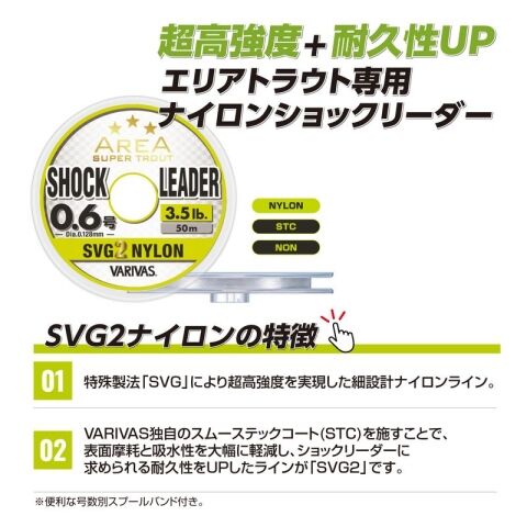 超高強度「SVGナイロン」+耐久性UP「スムーステックコート」エリアトラウト専用ナイロンショックリーダー