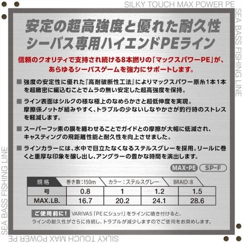 ◆強度の安定性に優れた『高耐破断性工法』により、マックスパワー原糸1本1本を超緻密に編込むことで、ムラの無い安定した超高強度を保持。