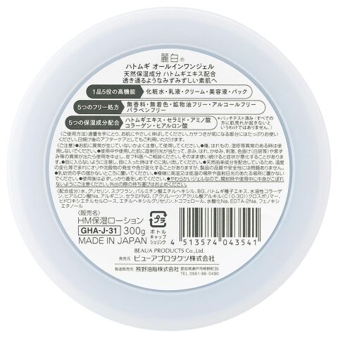 ■成分:水、グリセリン、スクワラン、パルミチン酸エチルヘキシル、BG、ハトムギ種子エキス、水溶性コラーゲン、ヒアルロン酸Na、アルギニン、セラミドNG、(アクリレーツ/アクリル酸アルキル(C10-30))クロスポリマー、ヒドロキシエチルセルロース、エチルヘキシルグリセリン、トコフェロール、水酸化Na、EDTA-2Na、フェノキシエタノール