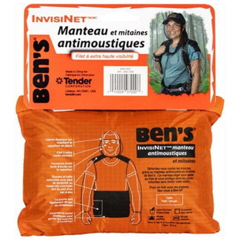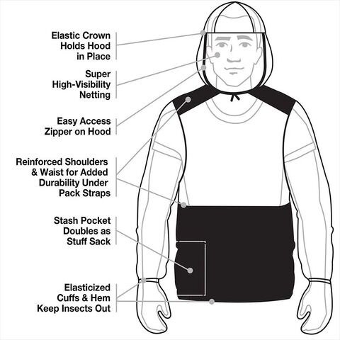 ◆メッシュ素材のポケッタブル防虫ジャケット。ミトンの手袋付きで上半身を頭部から指先まで完全に覆います。
