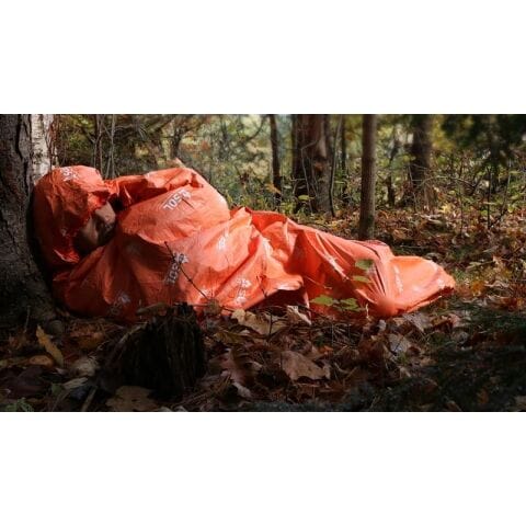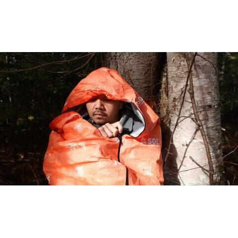 ポリエチレン不織布アルミ蒸着加工 - フルサイズのフード付き、60cmのファスナー、底部は約30cm×37cmの立体縫製