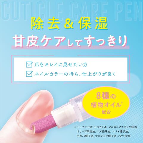 リムーバーとスティックが1本になって、余分な甘皮をやさしくオフできるケアペンです。